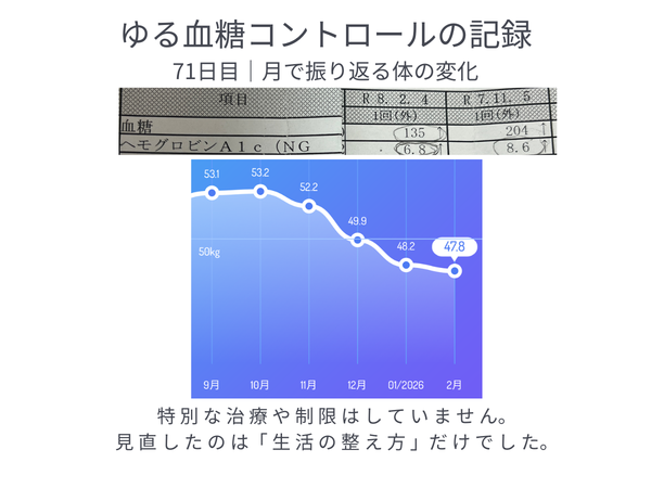 血糖値も少しずつ整ってきました。